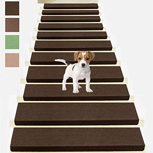 a spending review Non Slip Bullnose Carpet Stair Treads,Indoor Stair Runners for Steps,Soft Stair Rugs for Kids,Elders,and Dogs Safety, Set of 14 Carpet Treads for Wood Stairs,Self Adhesive,9" x28"x1.8",Dark Brown